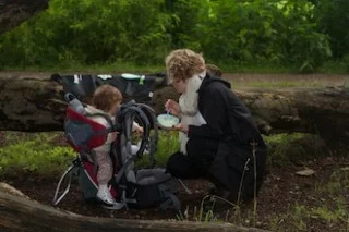 Her til eftermiddag efter Anna Björk havde sovet til middag, tog vi tøjet på og gik en tur ud i de dybe skove. Vi havde noget af mormors æblegrød med, som hun producerer i store mængder for tiden - den smager også virkelig godt i det fri!!...