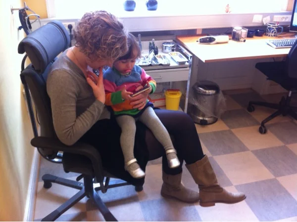 Den er gal med ørene igen. Heldigvis fik vi til sidst tid hos ørelægen. Det er godt at mor har en telefon med billeder og film med man kan se imens man venter.